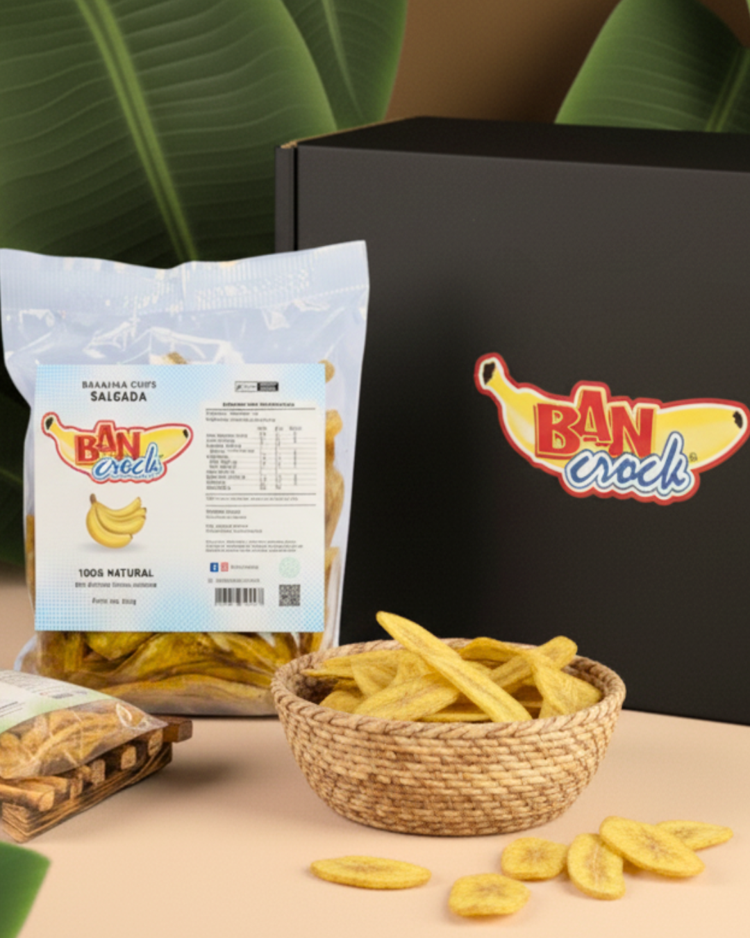 Crocante, saudável e prática. Feitas com bananas selecionadas e um toque de sal, sem glúten, lactose, conservantes ou gorduras trans. Perfeitas para lanches rápidos, pós-treino ou como acompanhamento leve, combinam o doce da banana com o sal em um sabor irresistível.
